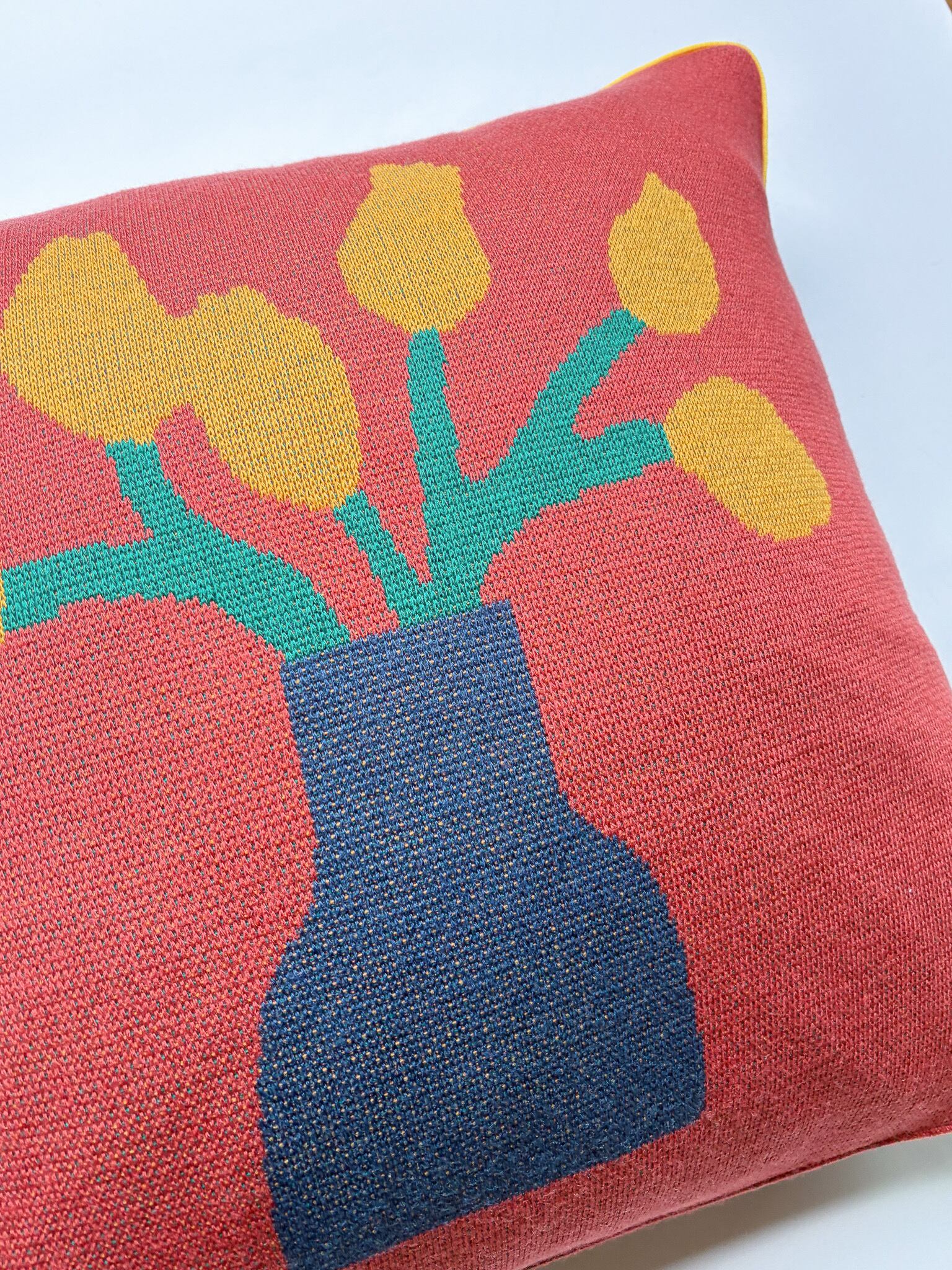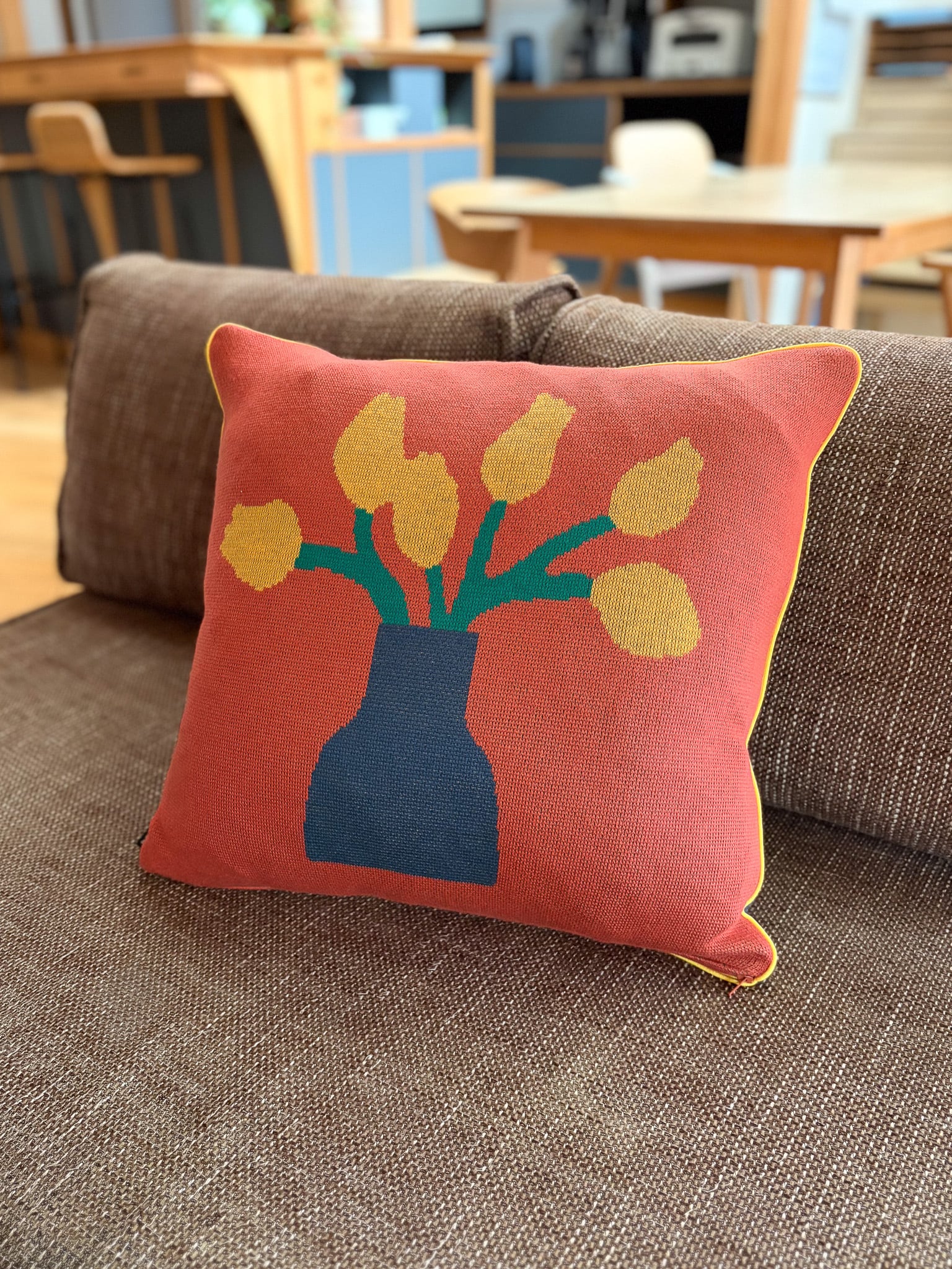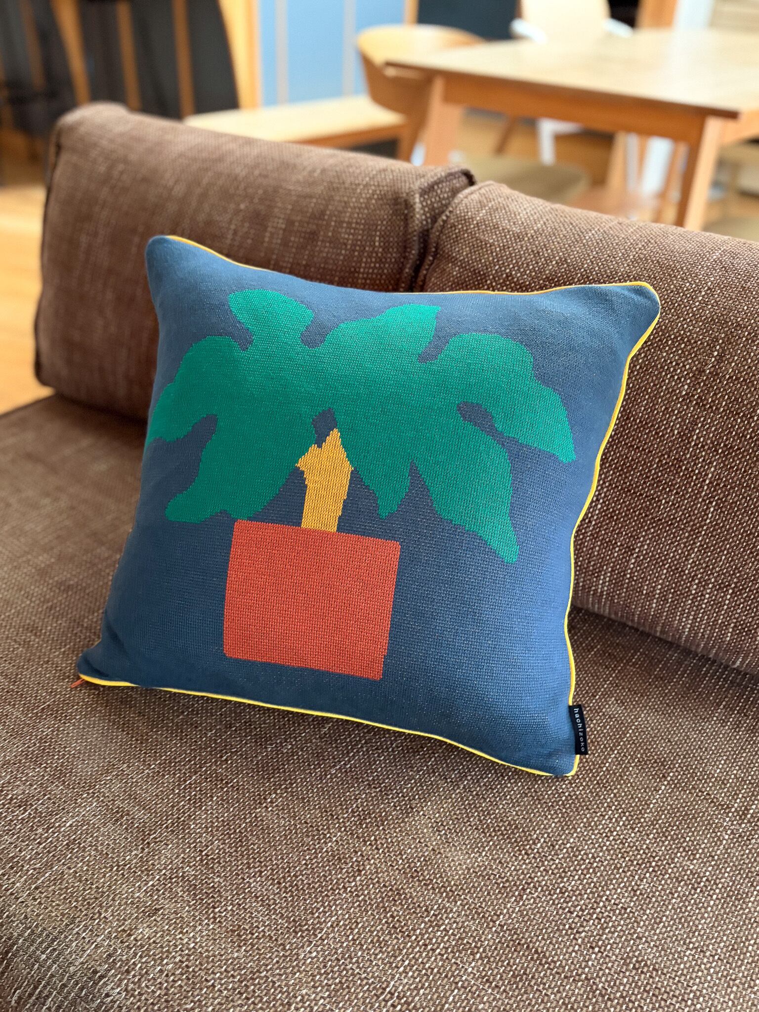 リバーシブルでお部屋の雰囲気やその日の気分で使える、ニットクッションカバーです。
