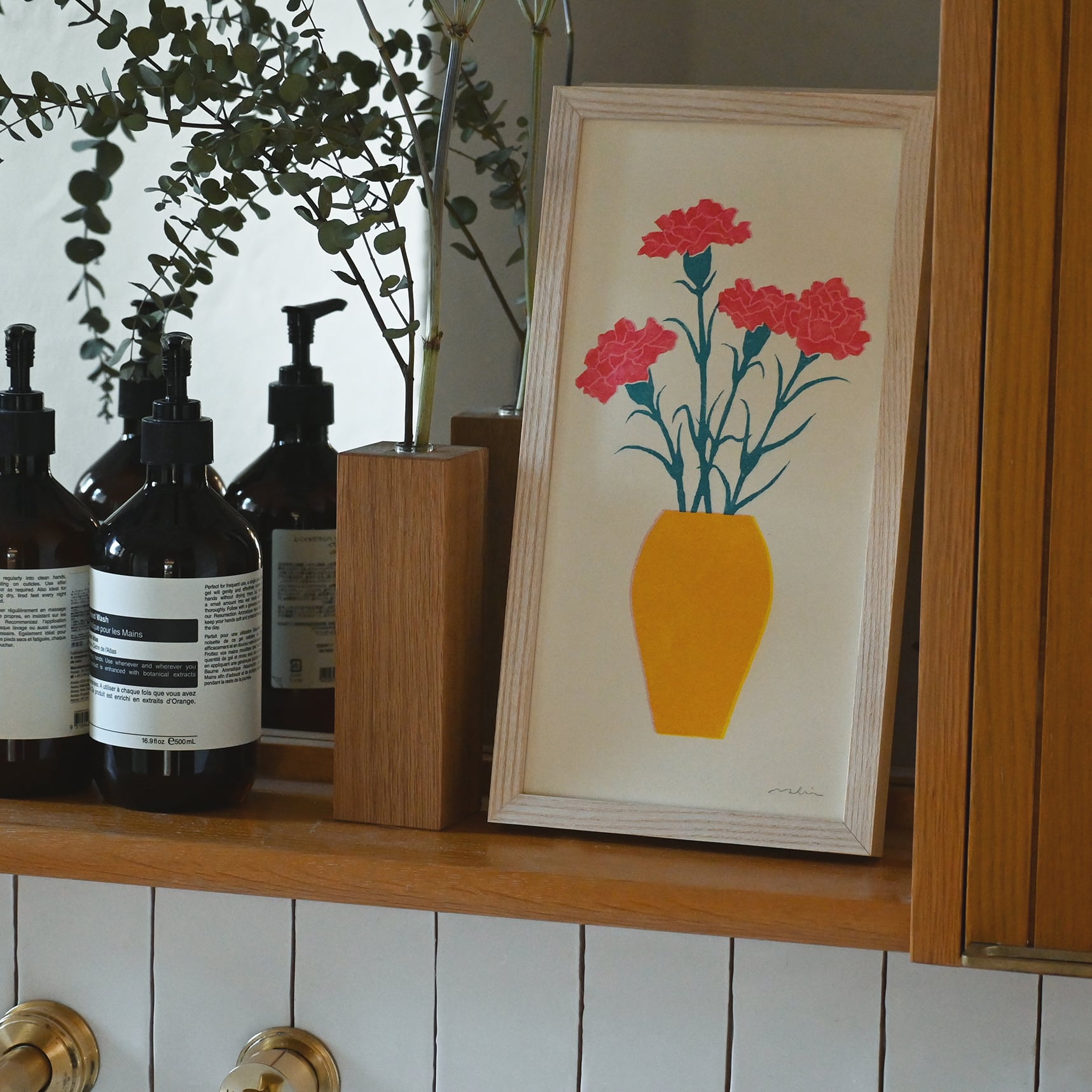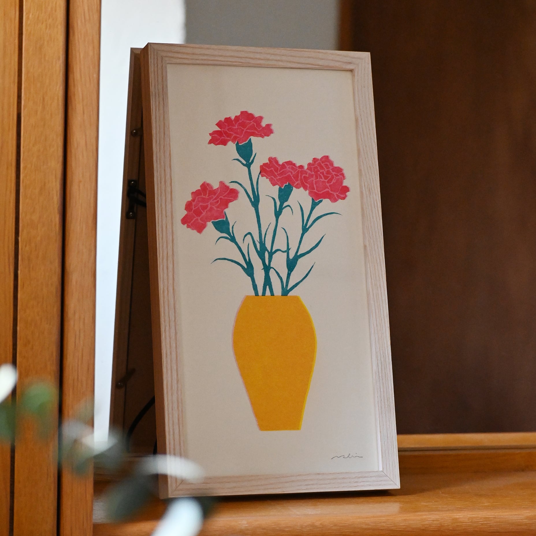 絵だからこそ表現できる、カーネーションのもつフォルムの美しさや、
